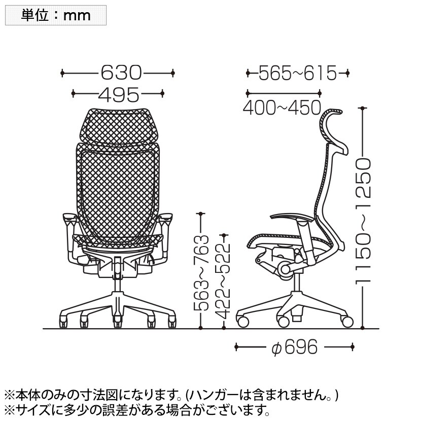 座面高さ / 422~522mm