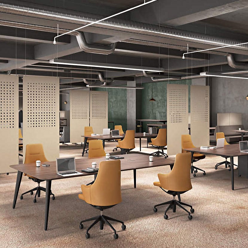 背と座の全面を張材で覆うことで、既存のオフィスチェアにはない柔らかな印象を生み出します。また、ツートンカラーにすることで、よりカジュアルな空間演出が可能です。