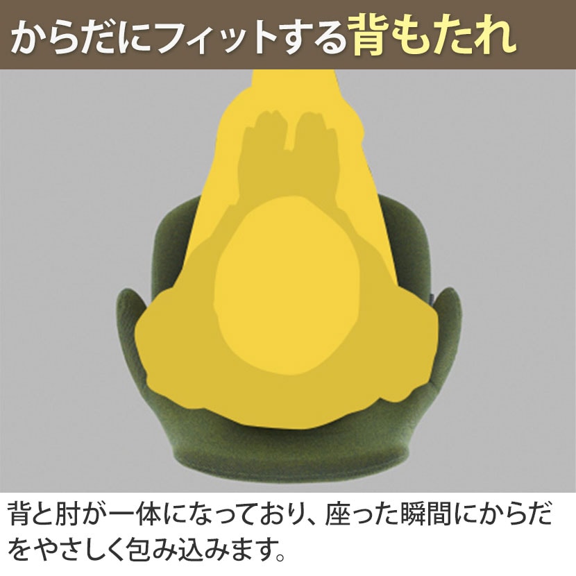 背と肘が一体になっており、座った瞬間にからだをやさしく包み込みます。