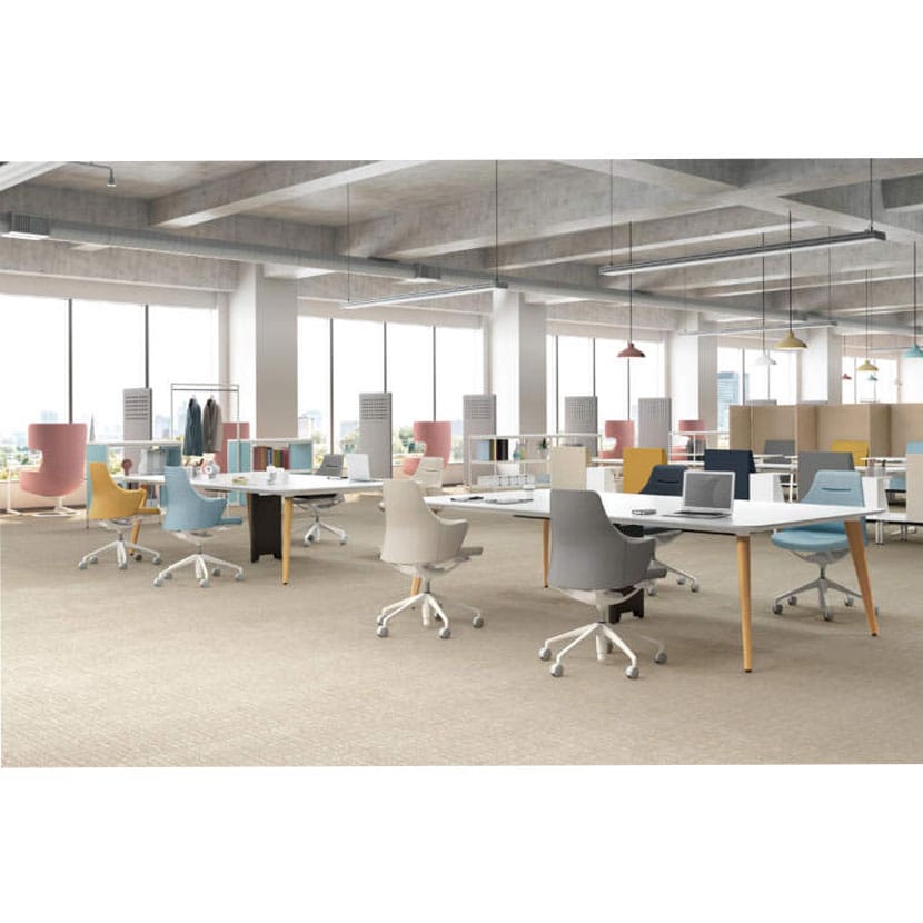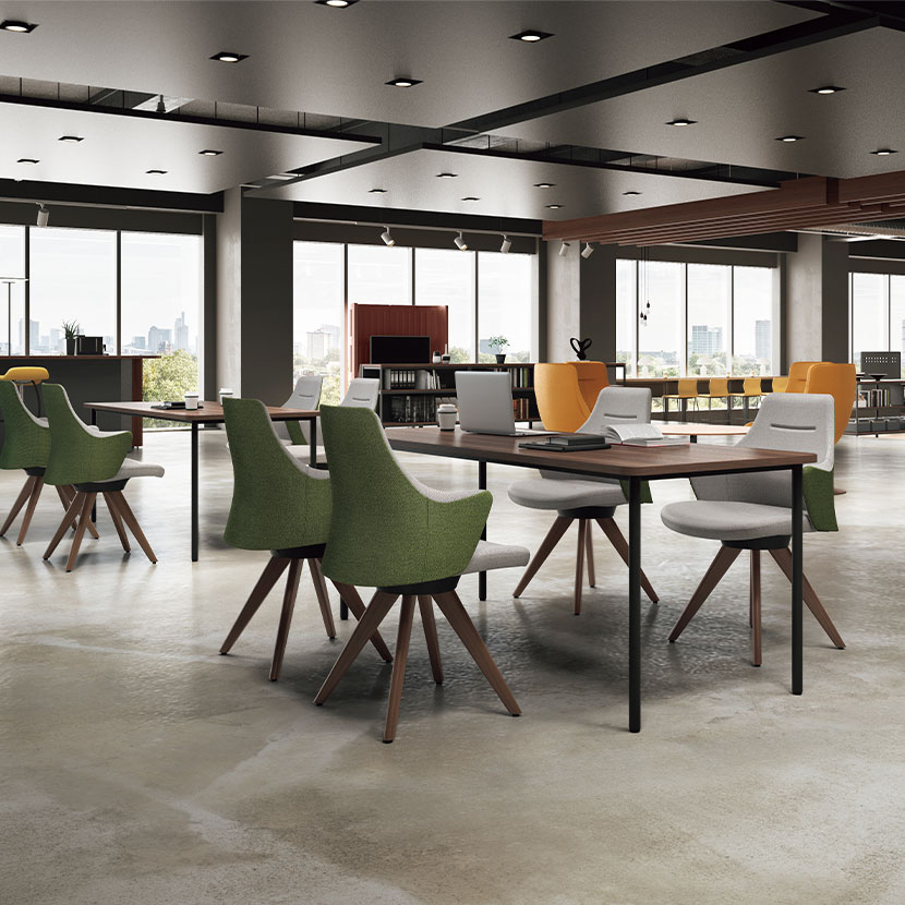 背と座の全面を張材で覆うことで、既存のオフィスチェアにはない柔らかな印象を生み出します。また、ツートンカラーにすることで、よりカジュアルな空間演出が可能です。
