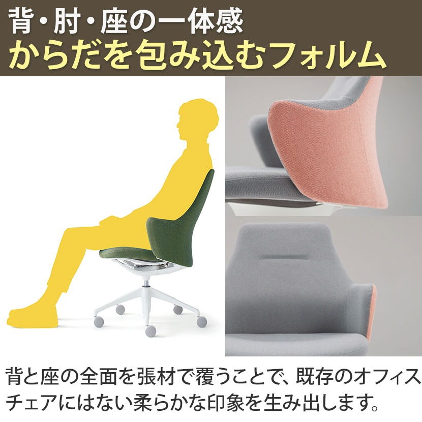 背・肘・座の一体感、やわらかく、からだを包み込むフォルム