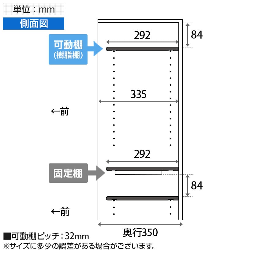 棚板の位置は、32mmピッチで調節可能。ハイカットシューズやショートブーツなど、高さがある靴も収納できます。また、取り外しができるのでロングブーツの収納にも対応し、靴のタイプを限定することなく便利に活用できます。※真ん中の棚板のみ2段とも固定棚になります。