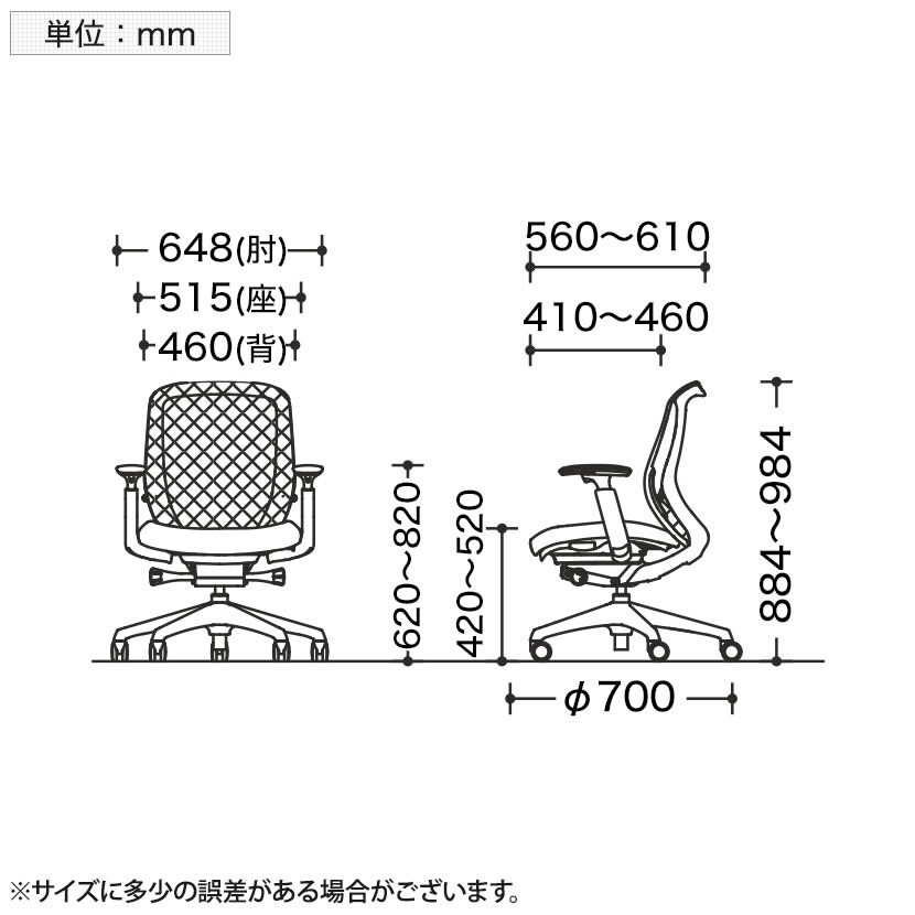 座面高さ / 420~520mm