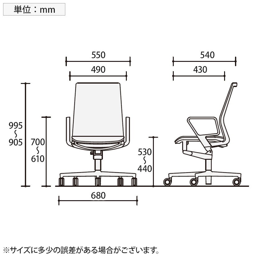 肘高さ / 610~700mm