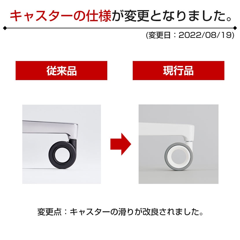 軽やかに見えるリング状のキャスター。フローリングを傷付けにくい「ポリウレタン巻きキャスター」仕様です。