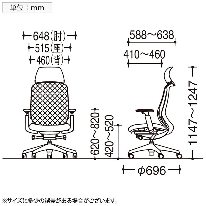 座面高さ / 420~520mm