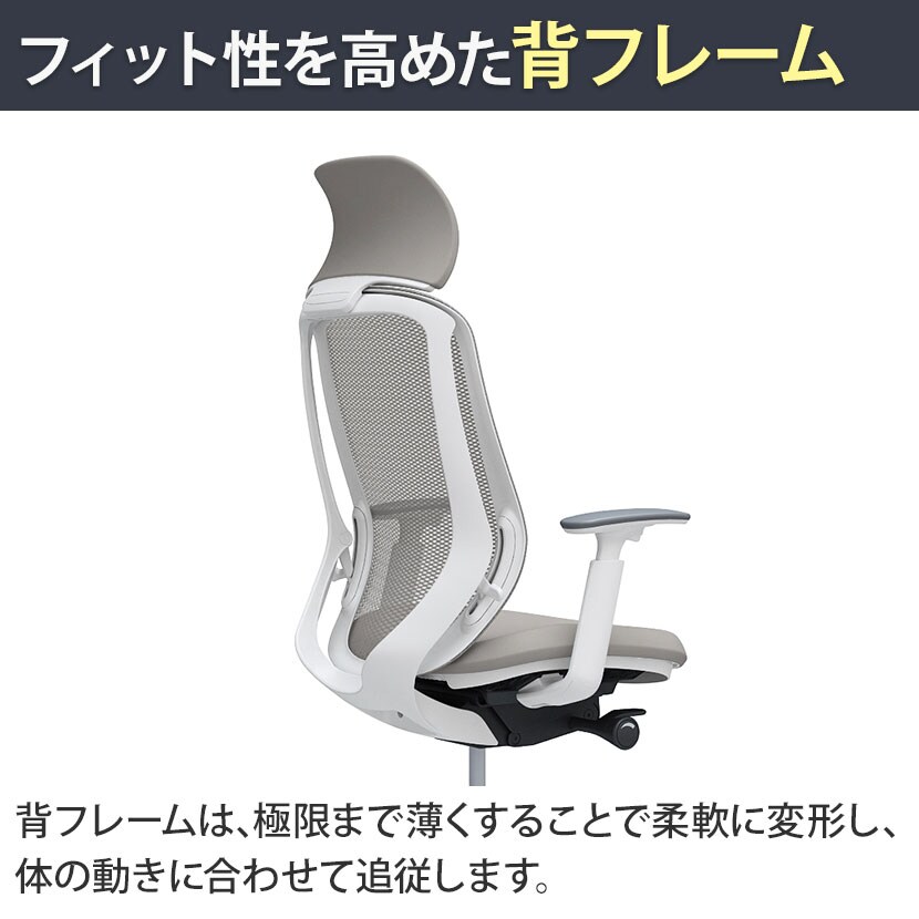 ・美しさと強度を兼ね備えた有機的なフレームと、お尻を包み込む座面のゆるやかなカーブで人のカラダから導き出された美しい曲線が、あなたを優しく包み込みます。