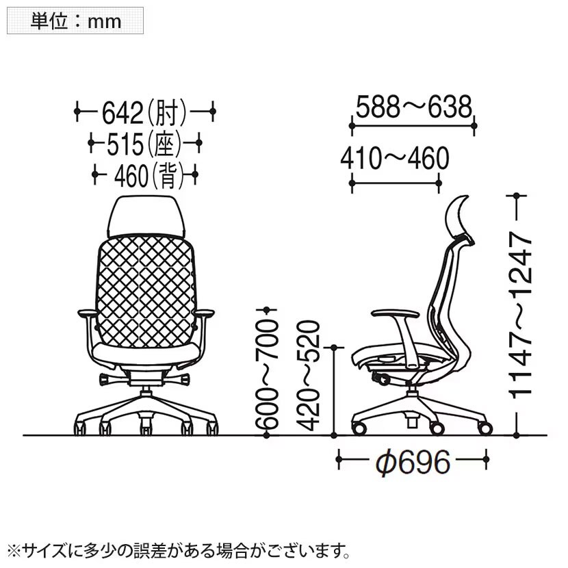 座面高さ / 420~520mm