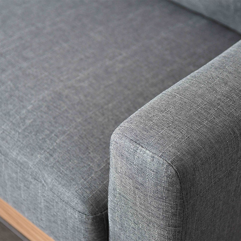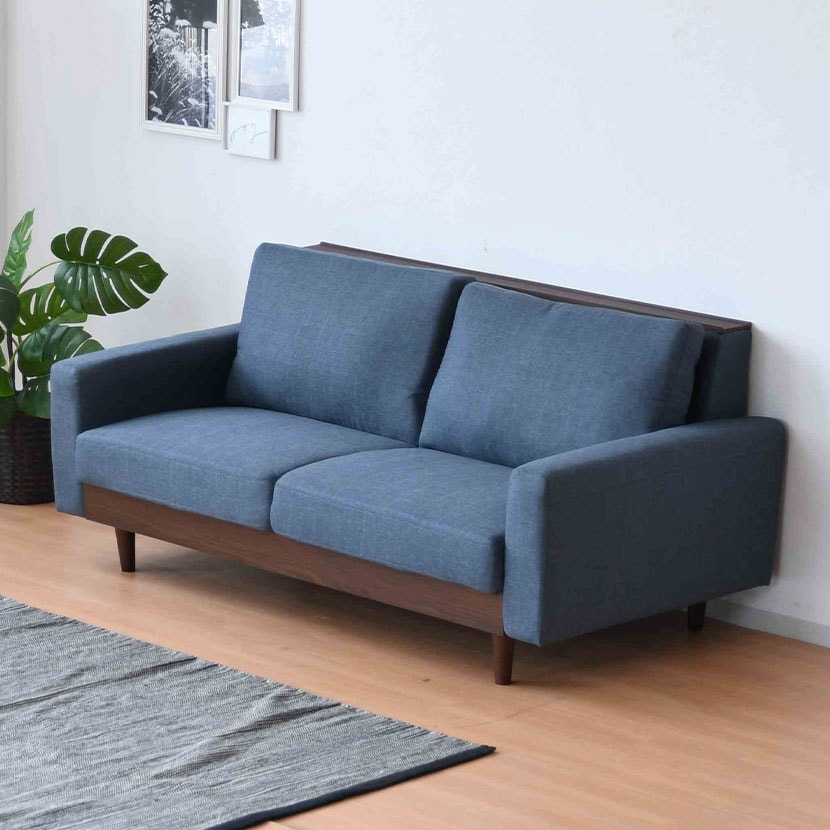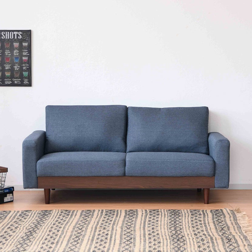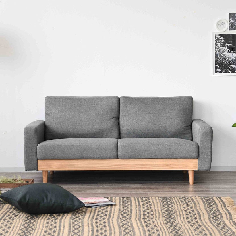 木部と張地の2トーンの色合いが特徴的な、ゆったり座れる2人掛けソファ。