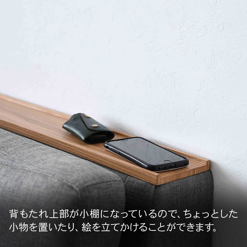 背もたれ上部が小棚になっているので、ちょっとした小物を置いたり、絵を立てかけることができます。