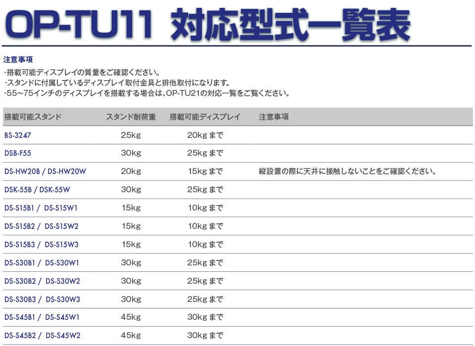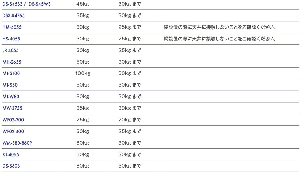 ※スタンド本体の耐荷重が30kg未満の場合は本体の耐荷重を参照