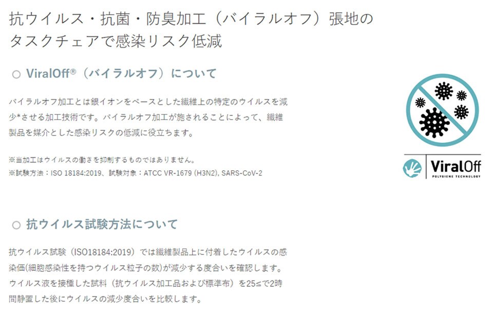※抗ウイルス、抗菌、防臭機能のバイラルオフ加工