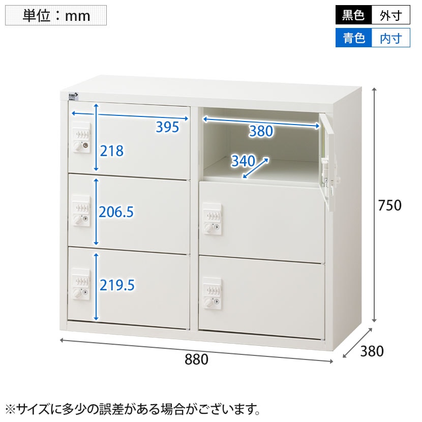 有効内寸(左列) / 幅395×奥行340×高さ218(上段)・206.5(中段)・219.5(下段)mm