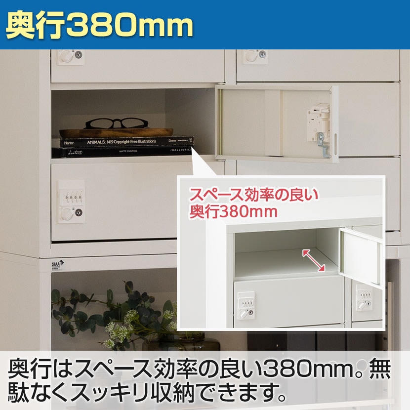 奥行はスペース効率の良い380mm。無駄なくスッキリ収納できます。