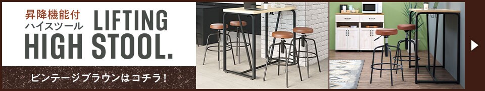 スタンディングデスクやカウンターテーブルなど、高さのある机とのあわせ使いにぴったりなハイスツール。コンパクトなので移動がしやすく、座りたい場所で手軽に使える一脚です。脚はすっきりとしたスマートなデザインで、昇降機能や足置きなど機能面にもこだわりました。座面は座り心地のよいクッション仕様。ブラックのPUレザーとブラウンのMDF素材が2層になったハイセンスなバイカラーです。