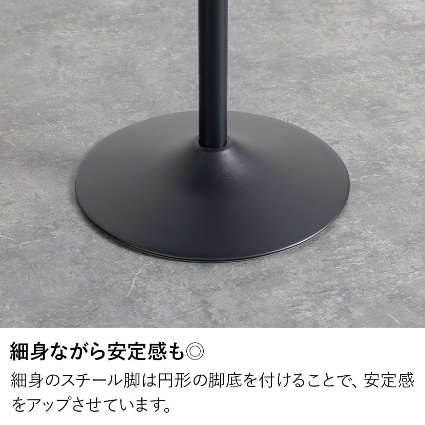細身のスチール脚は円形の脚底を付けることで、安定感をアップさせています。