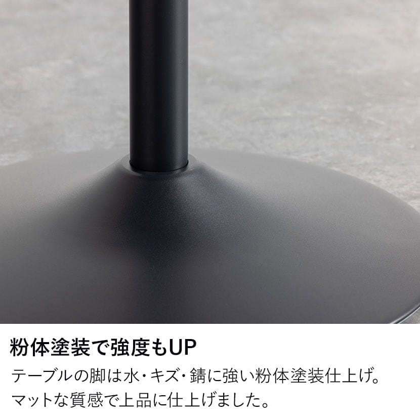 テーブルの脚は水・キズ・錆に強い粉体塗装仕上げ。マットな質感で上品に仕上げました。