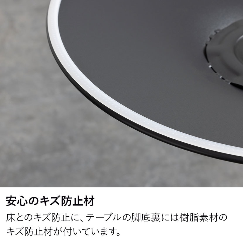 床とのキズ防止に、テーブルの脚底裏には樹脂素材のキズ防止材が付いています。
