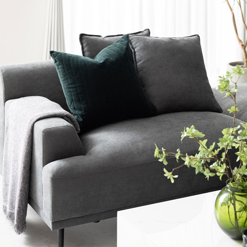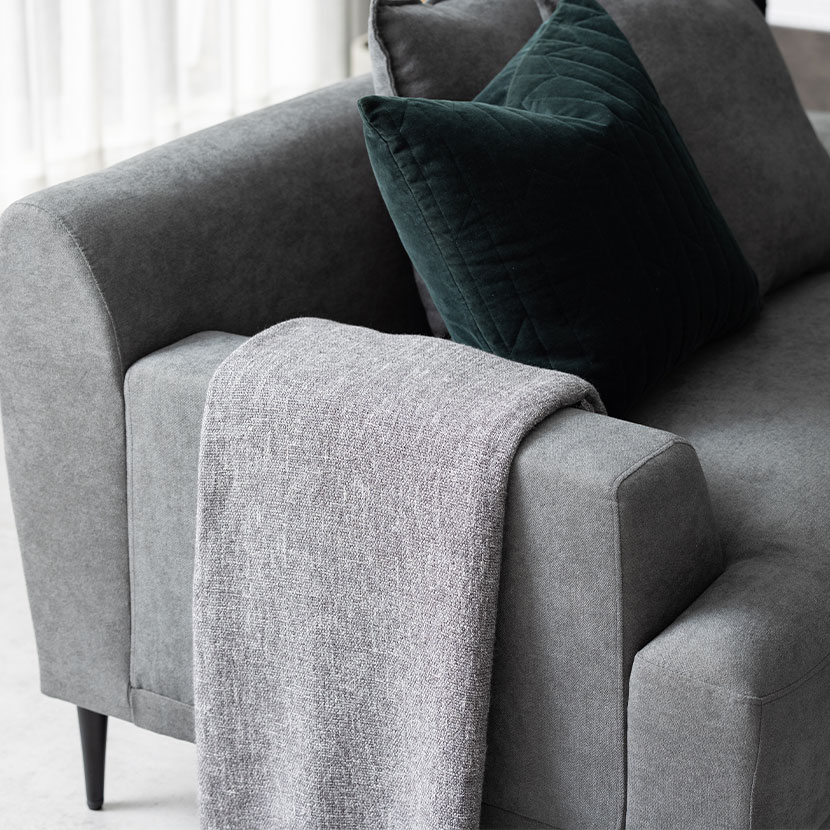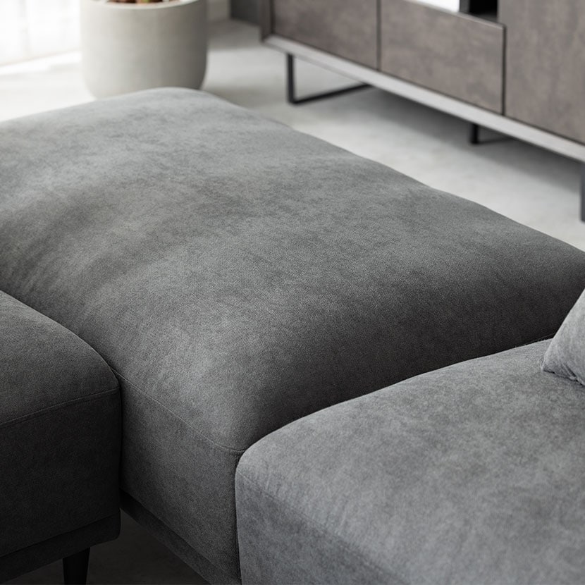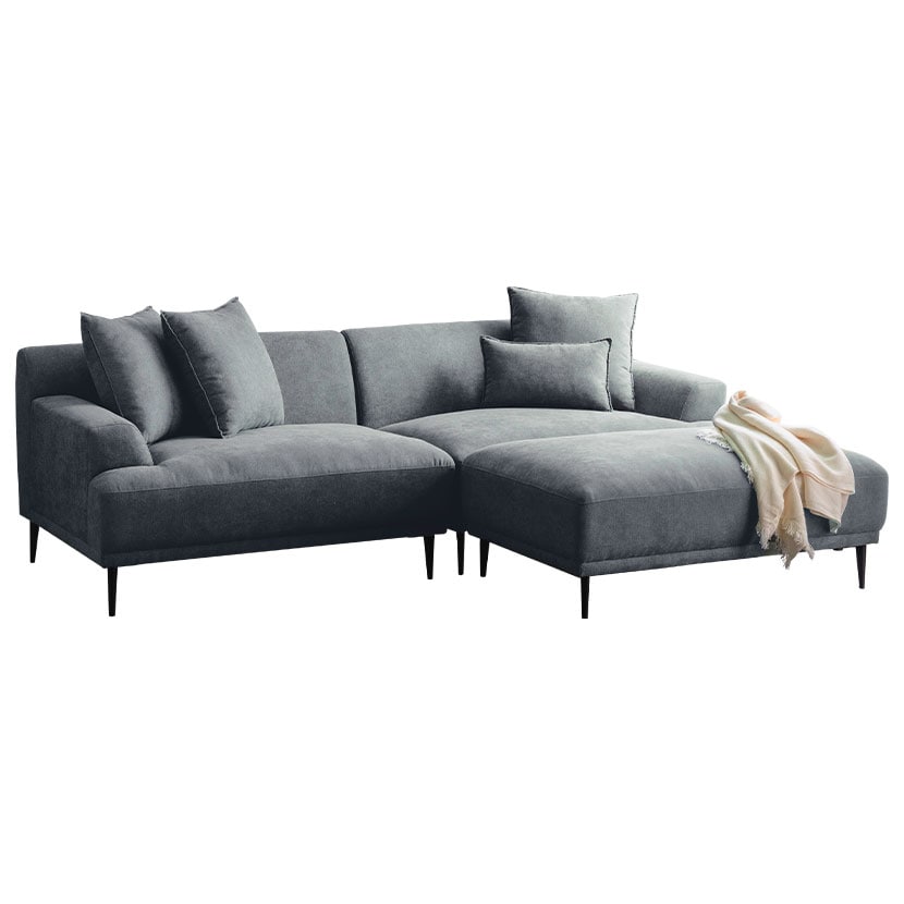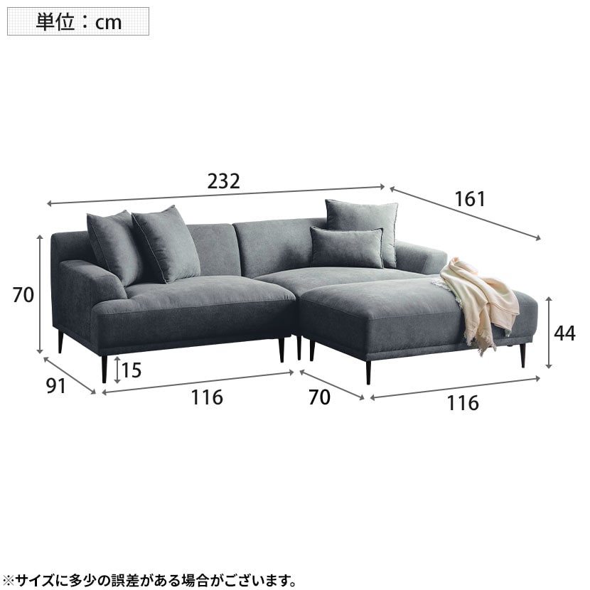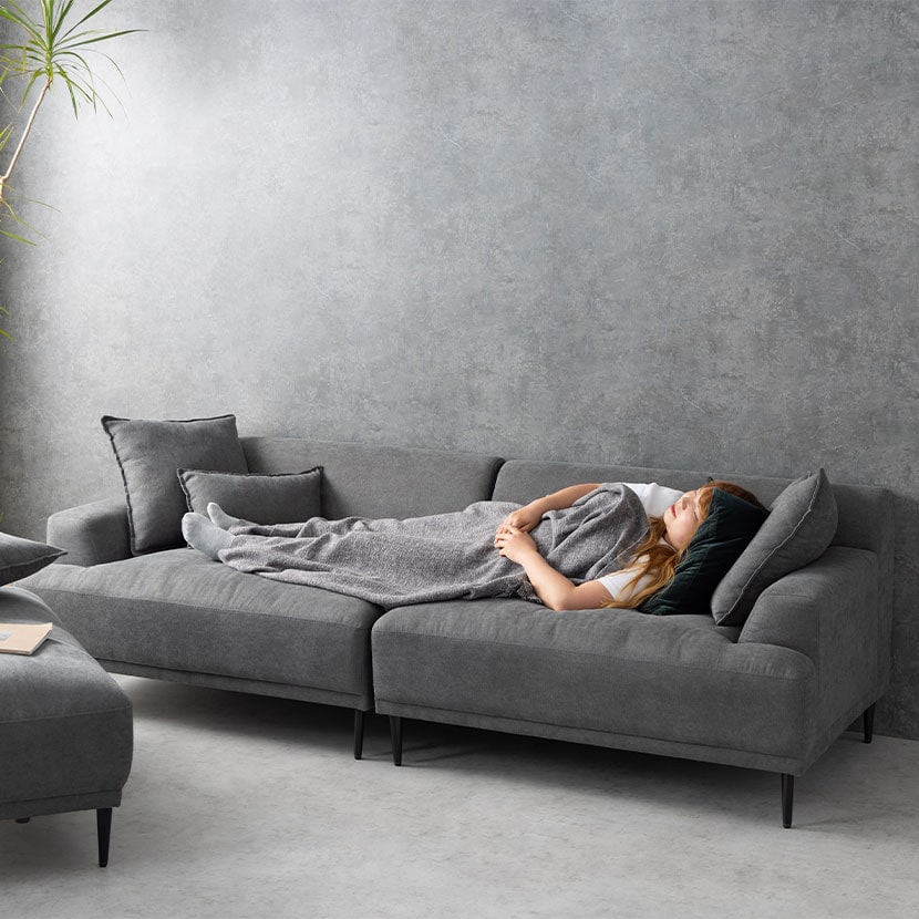 レイアウト次第で4通りの使い方が楽しめるカウチソファ。ゆったり座れる贅沢なワイドサイズ設計です。