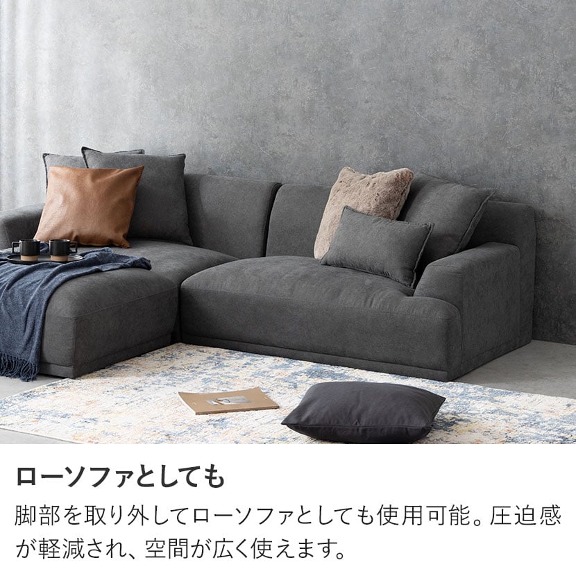 脚部を取り外してローソファとしても使用可能。圧迫感が軽減され、空間が広く使えます。