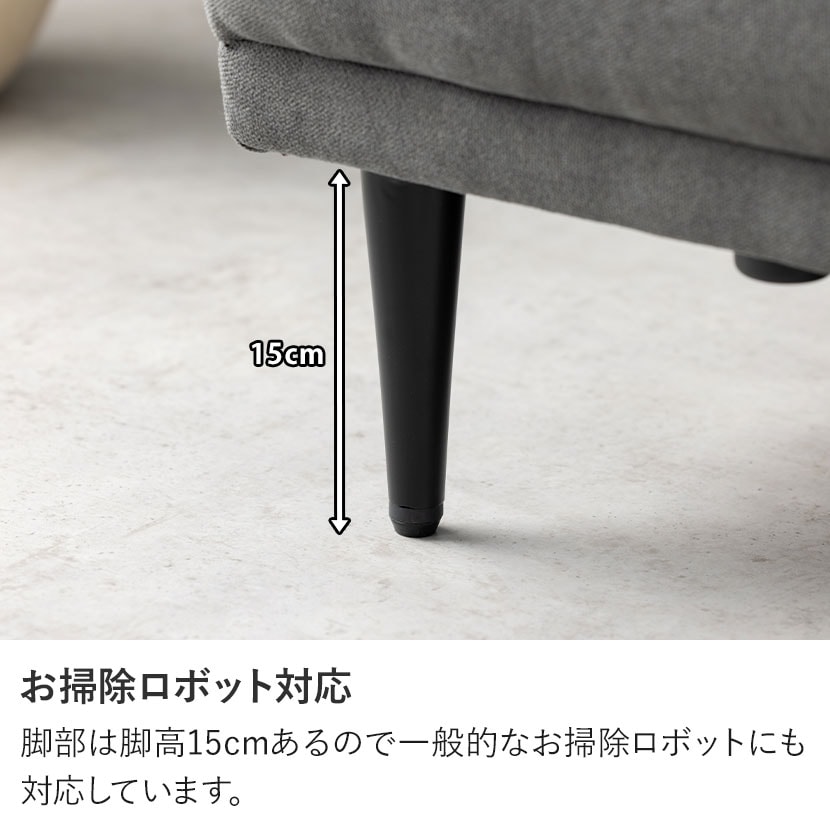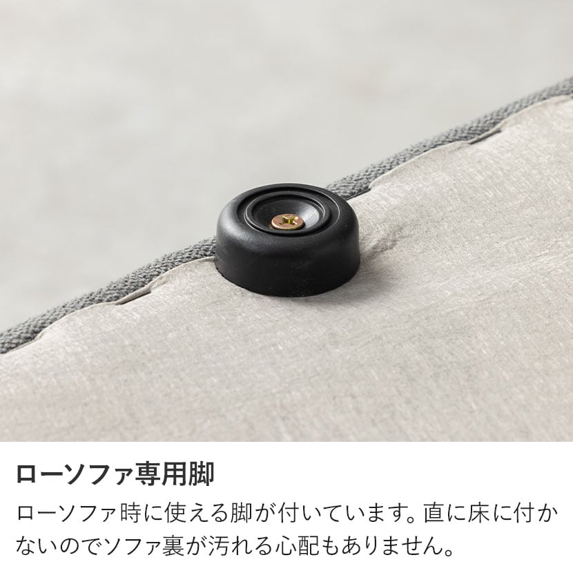 ローソファ時に使える脚が付いています。直に床に付かないのでソファ裏が汚れる心配もありません。