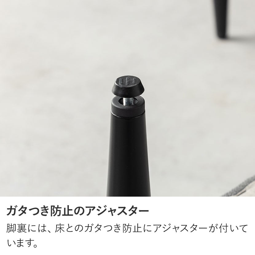 脚裏には、床とのガタつき防止にアジャスターが付いています。