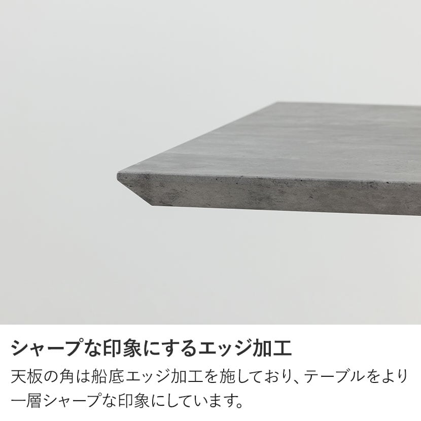 天板の角は船底エッジ加工を施しており、テーブルをより一層シャープな印象にしています。
