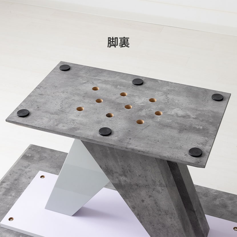 脚部はモニュメントのような幾何学デザインを採用。強度とデザイン性ふたつを兼ね備えています。