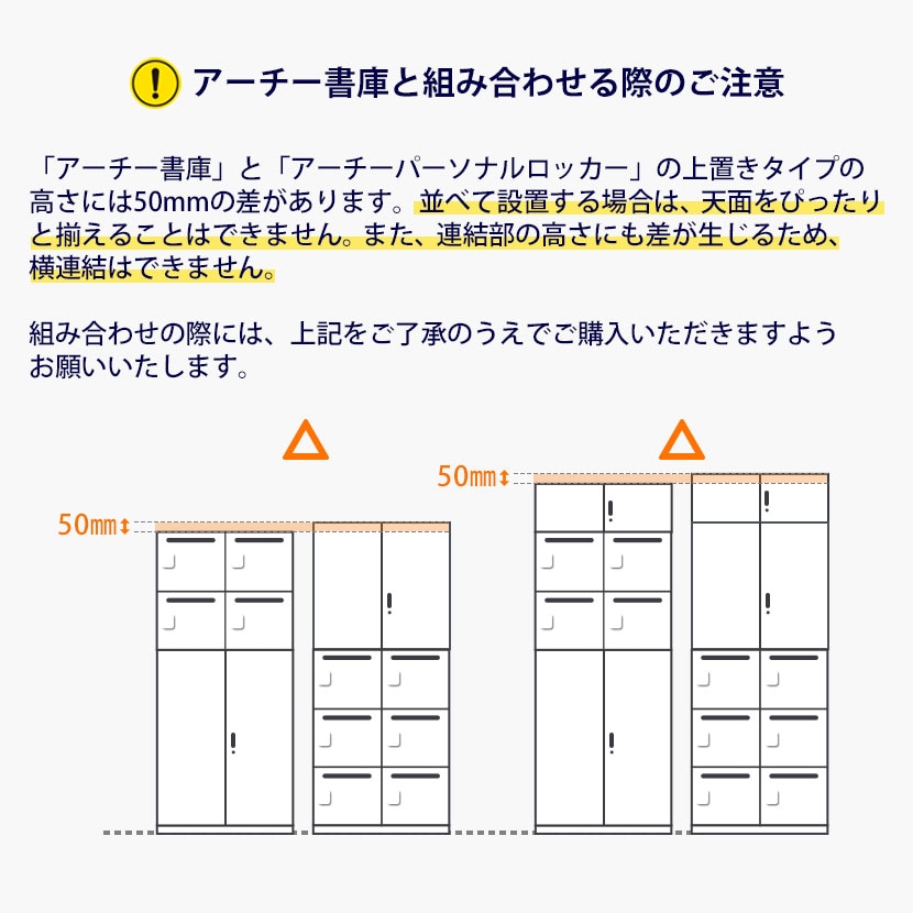 収納効率と使いやすさを重視した「アーチー」シリーズのパーソナルロッカー。頑丈なスチール製で、2列1段2人用の上置きタイプです。オフィス収納に必要な容量をしっかりと備えながら省スペースを実現。幅や奥行がコンパクトなので、フロアや通路の限られた空間を活かして設置できます。A4対応の投函口やダイヤル錠を備えるなど実用性も高く、フリーアドレス環境にもおすすめ。同シリーズの書庫と組み合わせて、収納力をアップできるのもポイントです。