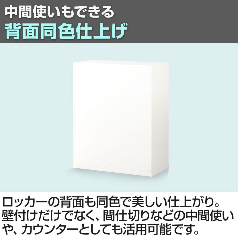 ロッカーの背面も同色で美しい仕上がり。壁付けだけでなく、間仕切りなどの中間使いや、カウンターとしても活用可能です。