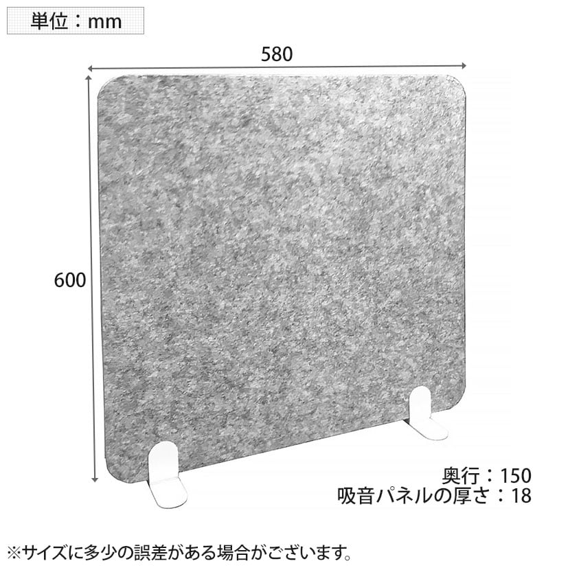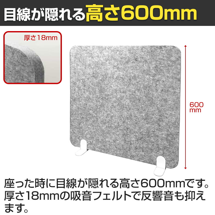 ・厚さ18mmの吸音フェルトパネルを使用したスタンド型のデスクパーティション。