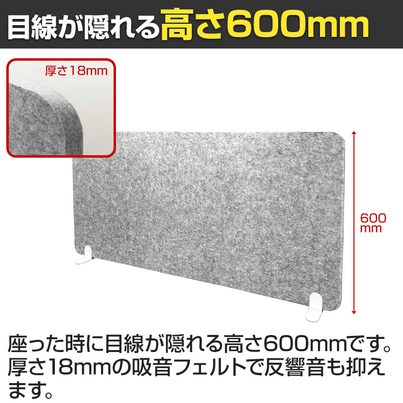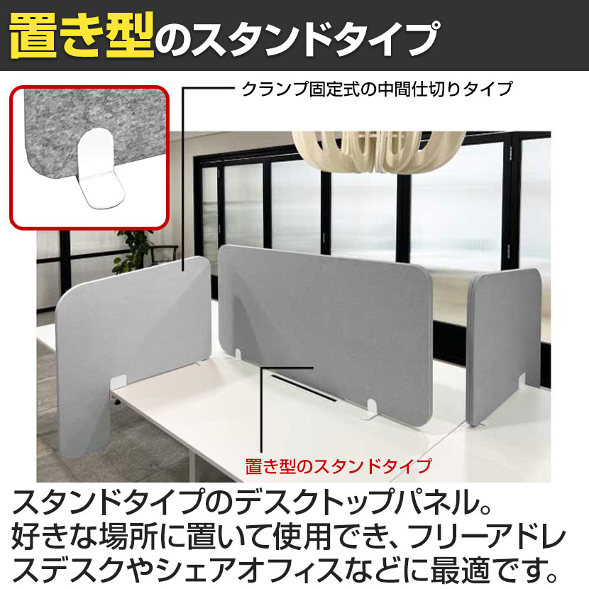 ・厚さ18mmの吸音フェルトパネルを使用したスタンド型のデスクパーティション。