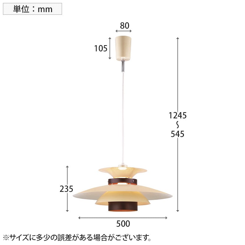 天井からシェード下までの高さ / 545~1245mm