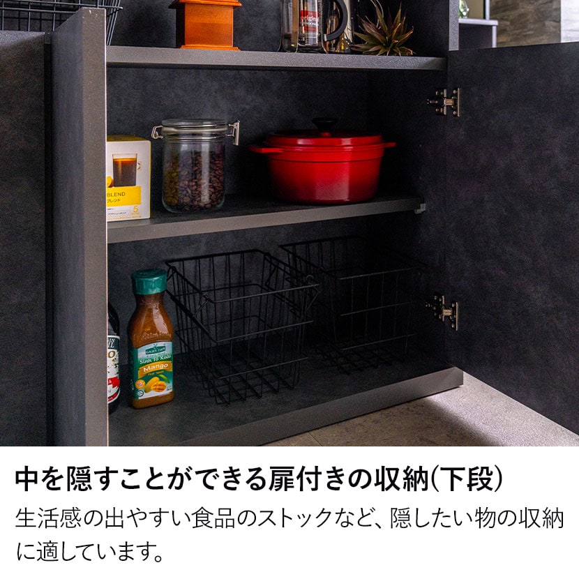 生活感の出やすい食品のストックなど、隠したい物の収納に適しています。