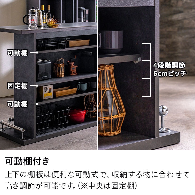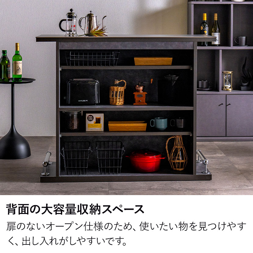 背面全体が収納スペースになっており、キッチン用品などの収納が可能です。