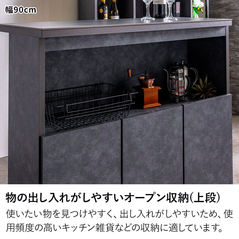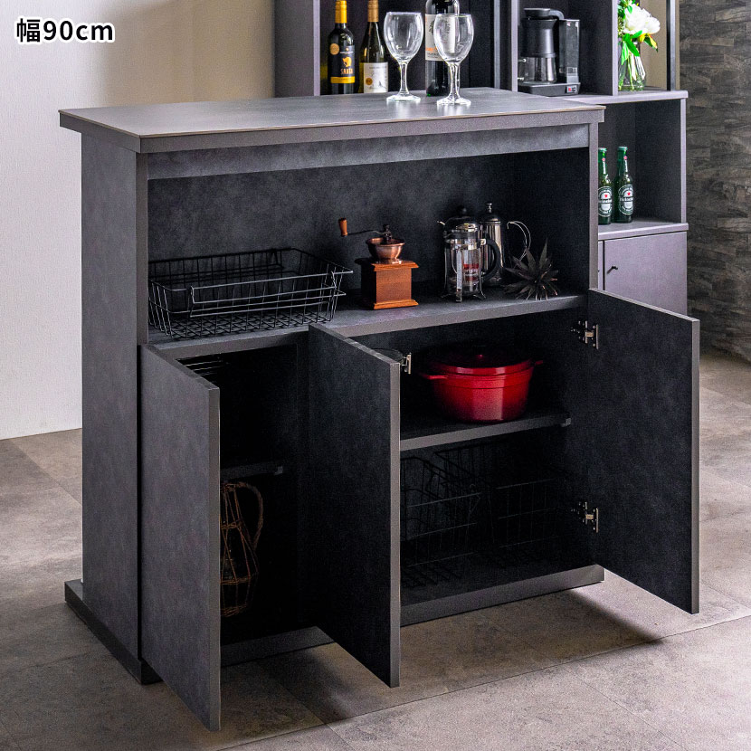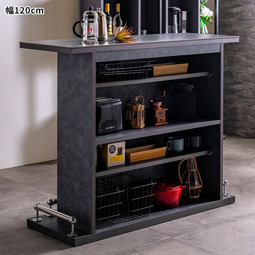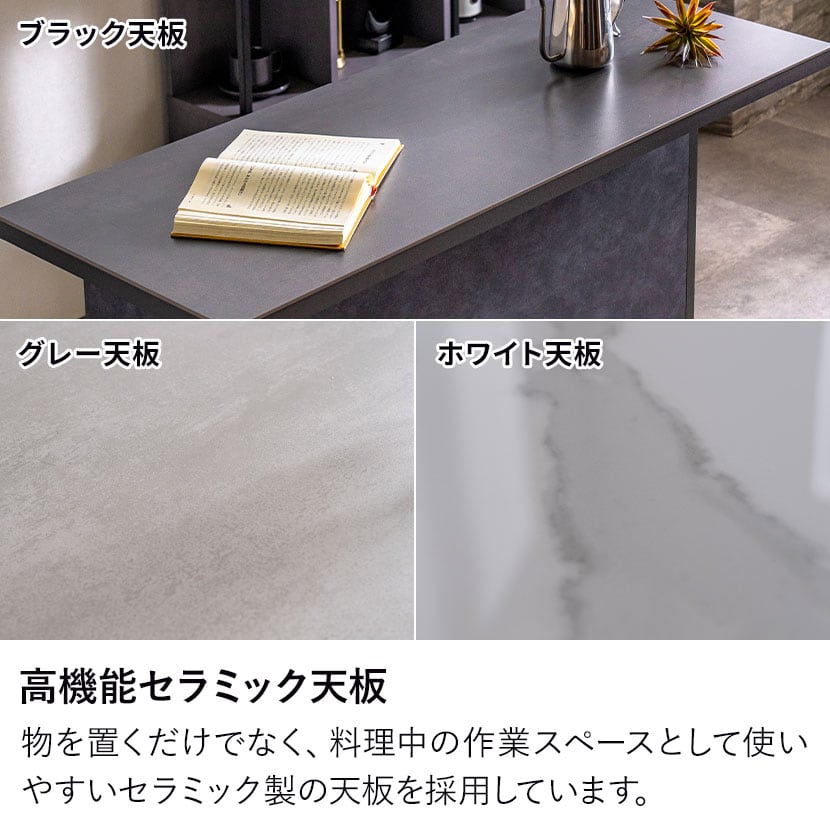 デザイン性はもちろん、セラミック天板や豊富な収納など実用性にも優れており、作業台、間仕切りとしてなど様々な使い方が可能です。