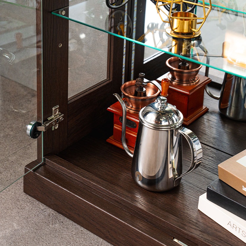 正面だけでなく、左右側面もガラス張り仕様のため、横からもコレクションを眺めることが可能です。