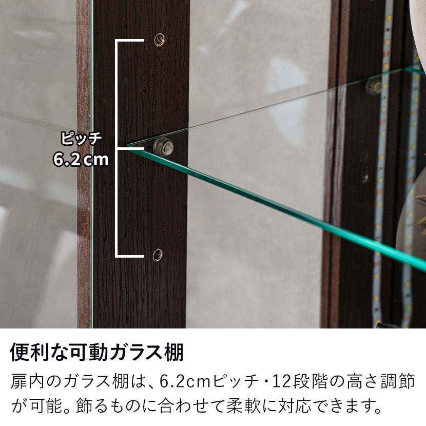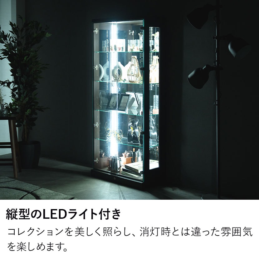 縦型のLEDライトが付いており、コレクションを鮮やかに照らします。