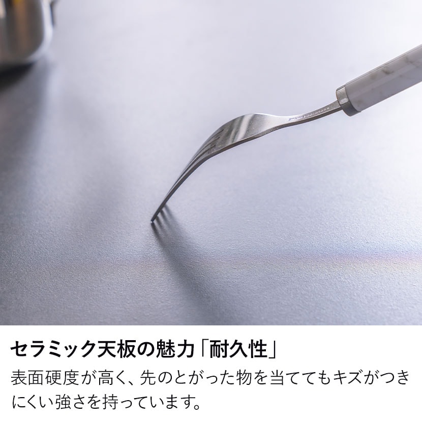 天板には、摩耗やキズ、耐熱性に強いセラミック素材を採用しています。