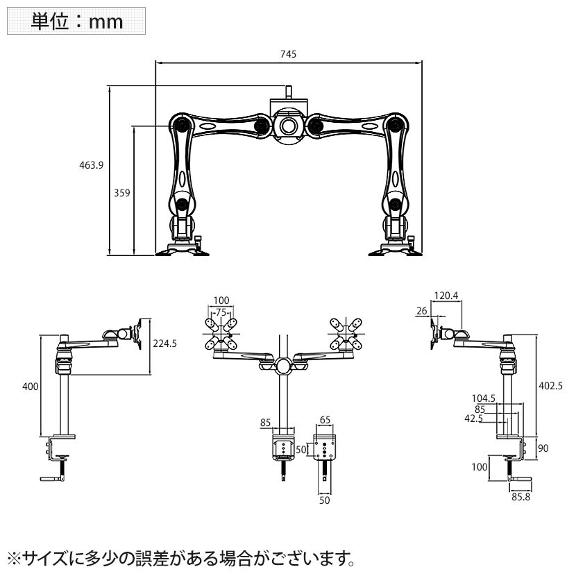 ・デュアルモニター設置時にはアームの高さにご注意ください。