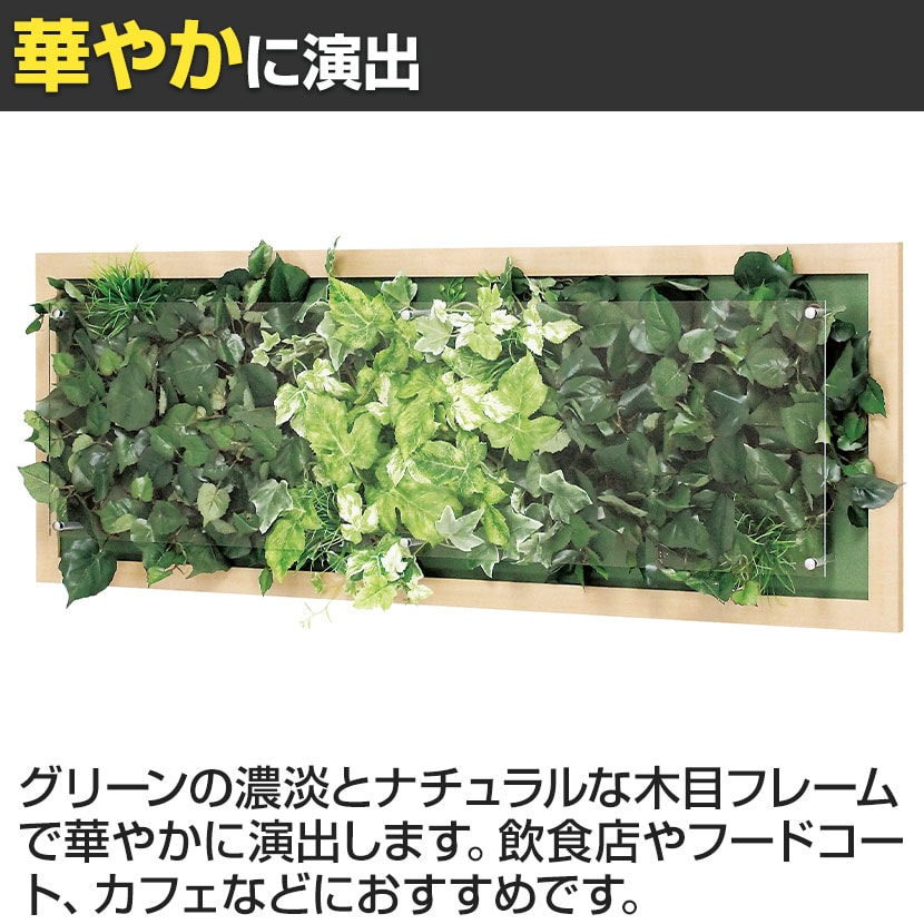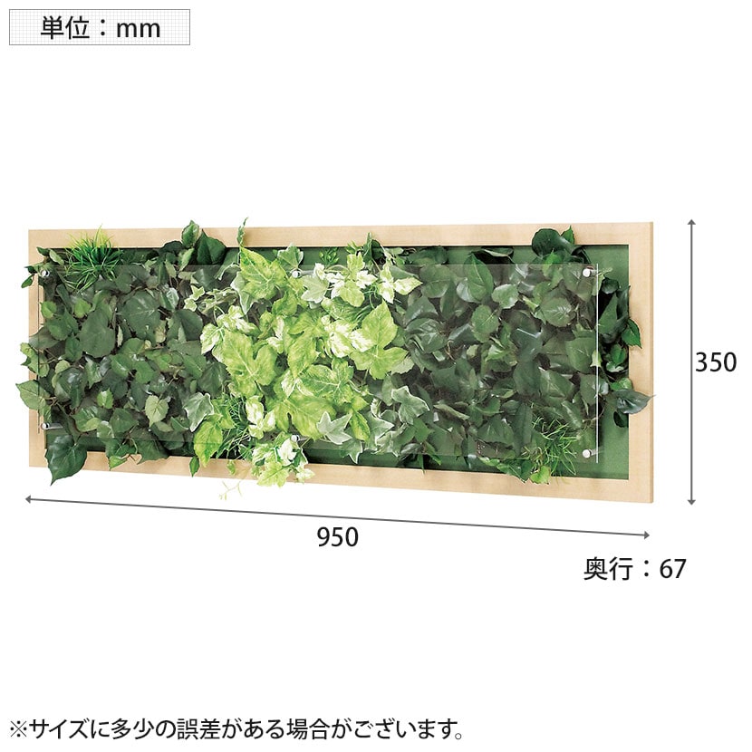・透明カバー付き、950×350mm角木目フレームのグリーンパネル。