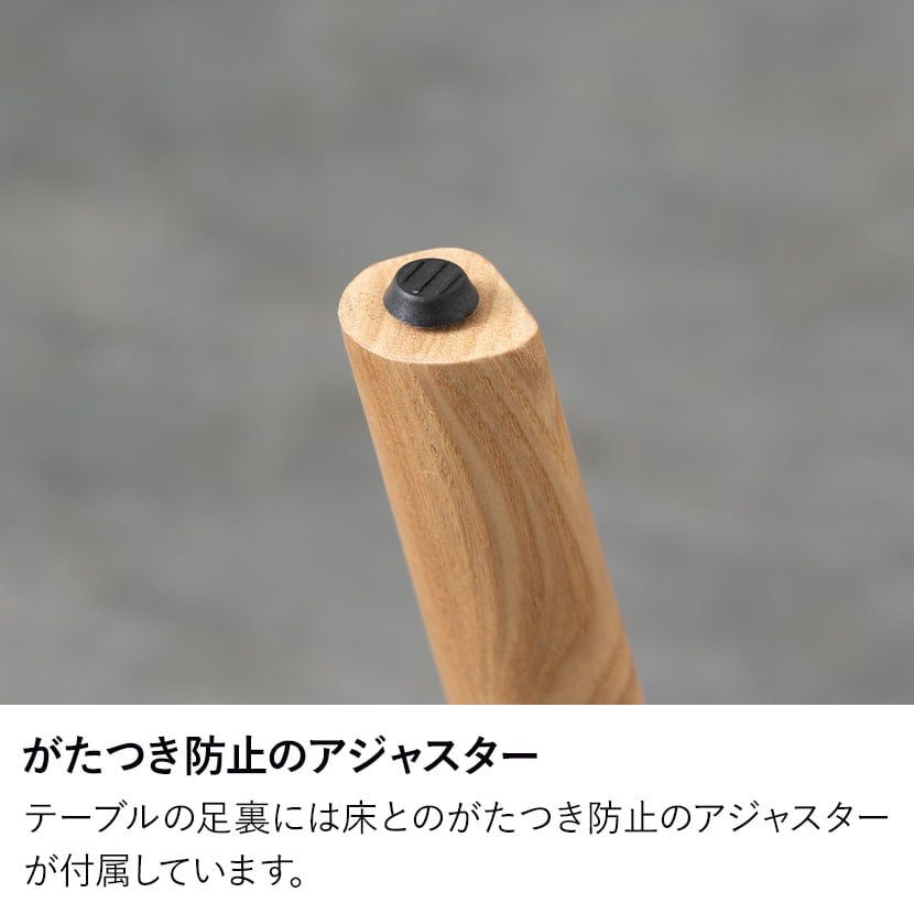 テーブルの足裏には床とのがたつき防止のアジャスターが付属しています。