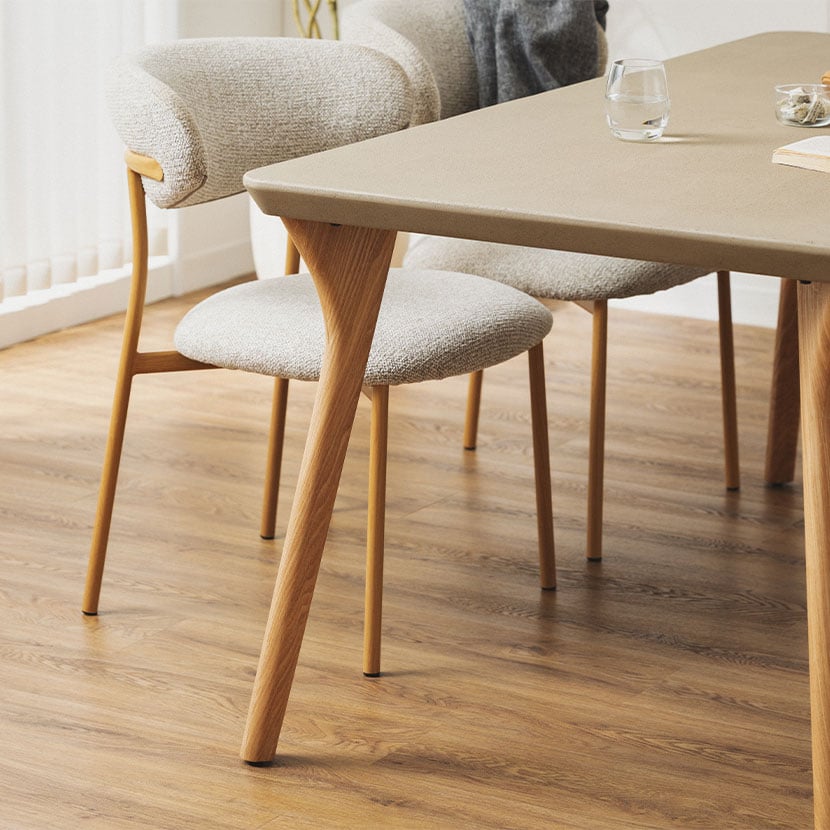 脚には天然木を使用し、緩やかな曲線美が天板の硬い質感を引き立てます。