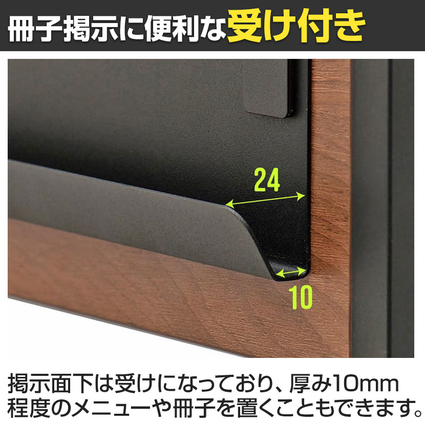 ・掲示面の受けでは厚み10mm程度の資料も提示可能