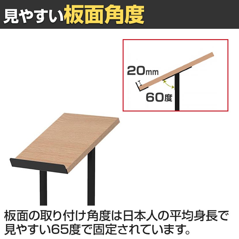 ・板面の取り付け角度は日本人の平均身長で見やすい65度で固定されています。