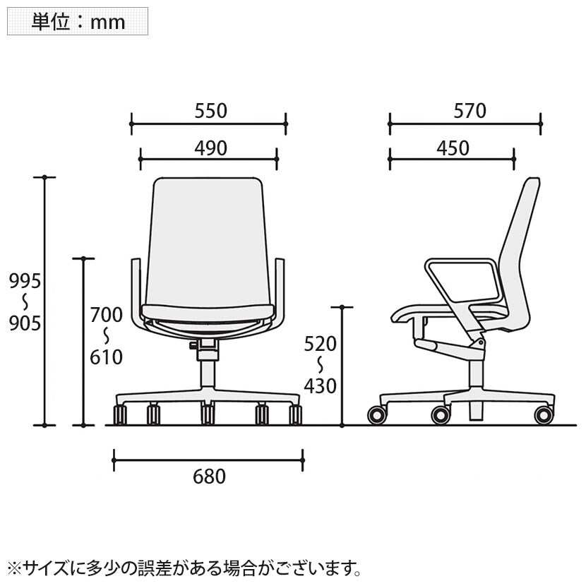 座面高さ / 430~520mm