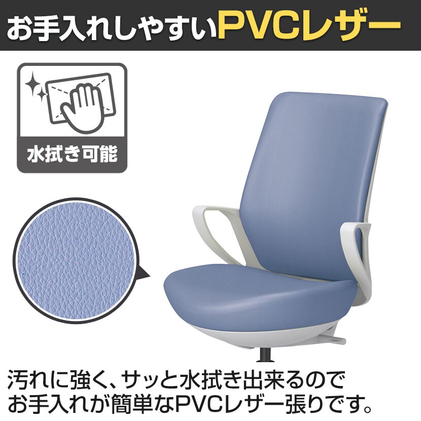 ・張地には耐アルコール、耐次亜塩素酸ナトリウム性能を持ったエコPVCレザーを使用。