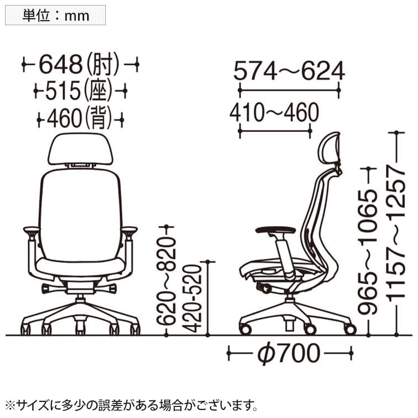 肘高さ / 620~820mm