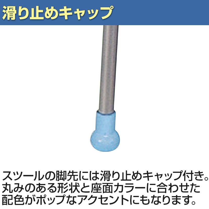 スツールの脚先には滑り止めキャップが付いています。丸みのある形状と座面カラーに合わせた配色が、スツールのポップなアクセントにもなります。