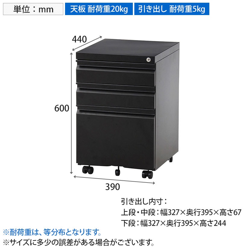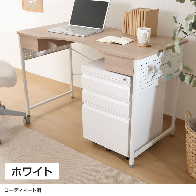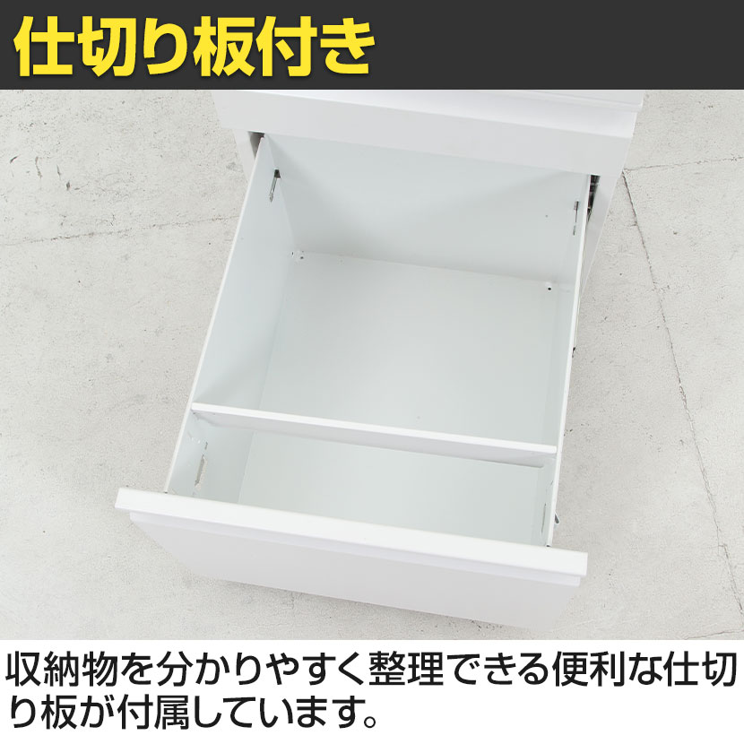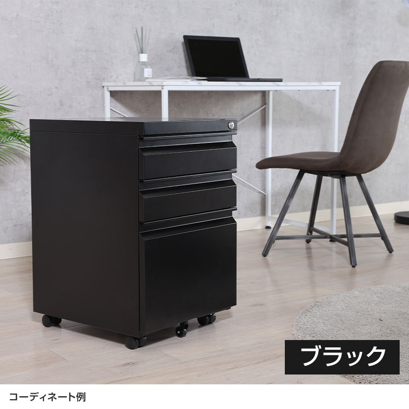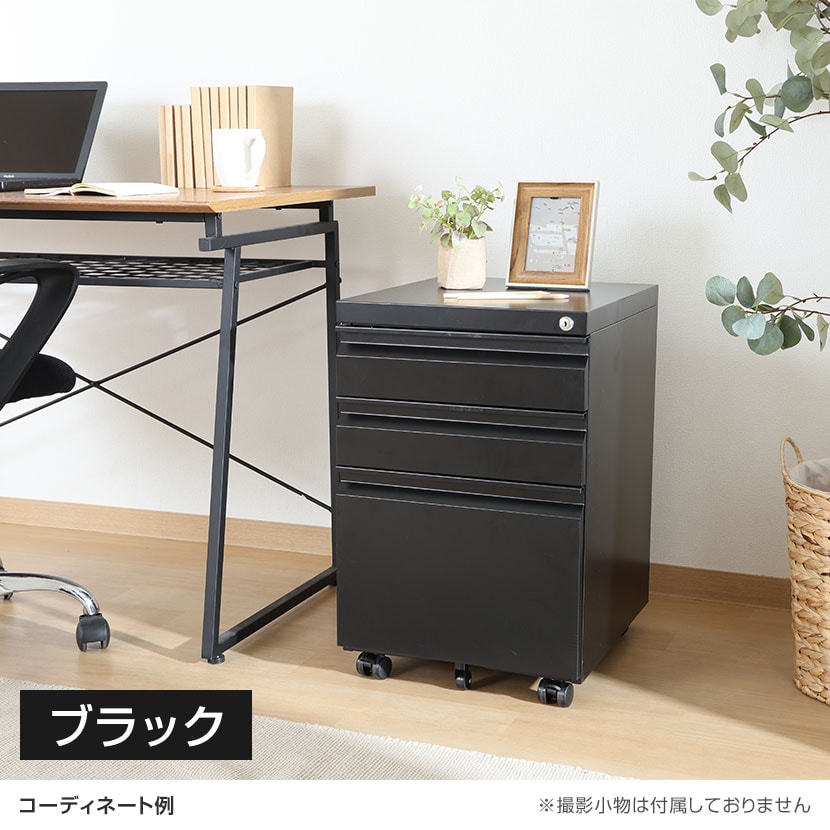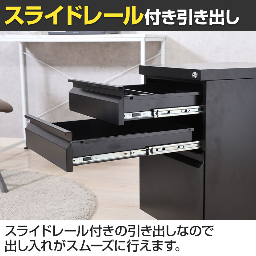 ・3段の引き出しには文具や書類などをたっぷり収納でき、3段目はA4サイズのファイルを縦横どちらの向きでも入れることができます。